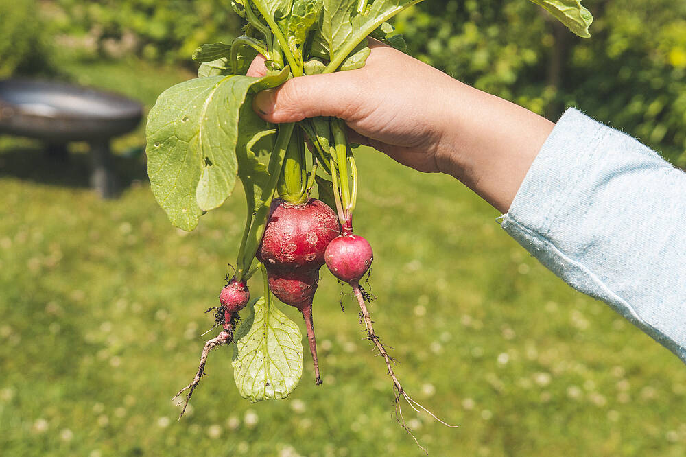 Das pflegeleichte Radieschen ist das perfekte Gewächs für Anfänger*innen. Der leicht scharfe Geschmack entsteht durch die Senföle, die wiederum eine Vielzahl von Vitaminen enthalten. Am besten suchst du für deine Radieschen einen warmen und sonnigen Platz aus. Von nun an solltest du deine Radieschen regelmäßig gießen. Nach vier bis sechs Wochen haben sie den besten Geschmack.