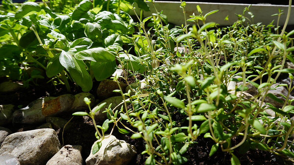 Einfach unentbehrlich in der mediterranen Küche ist der Thymian. Schon im antiken Griechenland haben die Gladiatoren vor ihren Kämpfen in Thymianbädern gebadet, um Kräfte zu tanken. Auch im Balkonbeet ist der Thymian ein wahrer Kraftprotz. Der intensive Duft seiner ätherischen Öle vertreibt viele Störenfriede vom Balkon und schützt so anderes Gemüse vor Schädlingen. Du hast außerdem sehr lange was von deinem Thymian, denn er ist immergrün (kann abgedeckt überwintern) und ziemlich trockenheitsresistent. Darüber hinaus locken seine Blüten Wildbienen an.