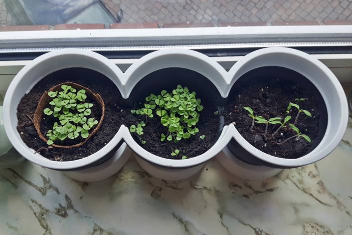 07. Mai 2018: Luft, Wasser, Wärme, Licht und eine sichere Umgebung – mehr braucht eine Basilikumpflanze nicht. Seit dem Umzug in ein erdbebensicheres Plastikreihenhaus gibt es kein Halten mehr. Auf meiner Fensterbank wuchert das Basilikum und alle Zweifel der letzten Wochen scheinen wie weggeblasen. In heller Stadtgärtner-Euphorie pflanze ich im dritten Topf kleine Tomatenpflanzen ein, die mir anvertraut wurden. Man verlässt sich auf mich, ich darf sie nicht enttäuschen!