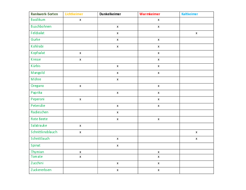 Die meisten Kräuter- und Gemüsesorten gehören zu den Warmkeimern. „Warm“ beginnt in diesem Kontext bei mindestens 5 Grad Celsius – einige Pflanzen benötigen zum Keimen eine Wärmeperiode von über 5 Grad Celsius, viele andere wie Tomaten oder Basilikum eine Wärmeperiode von 16 bis 24 Grad Celsius.