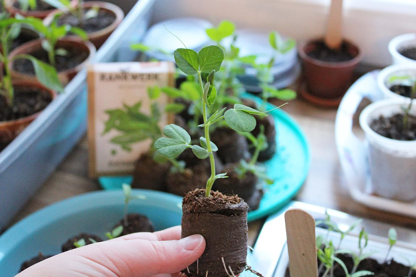 Darüber hinaus eignen sich Bohnen und Erbsen besonders gut, um sie in der Wohnung anzubauen. Am besten stellst du sie vor ein Fenster oder eine Glastür. Als Rankhilfe kannst du Holzstäbchen in die Erde stecken. Verwende am besten einen Blumenkasten zum Anpflanzen.