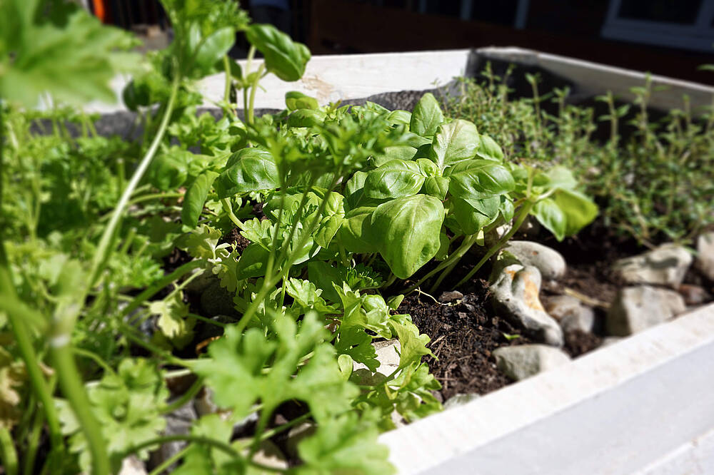 Erntest du morgens, haben Kräuter das meiste Aroma. Auch nach ein paar sonnigen Tagen und vor ihrer Blütezeit sind viele Kräutersorten besonders aromatisch.