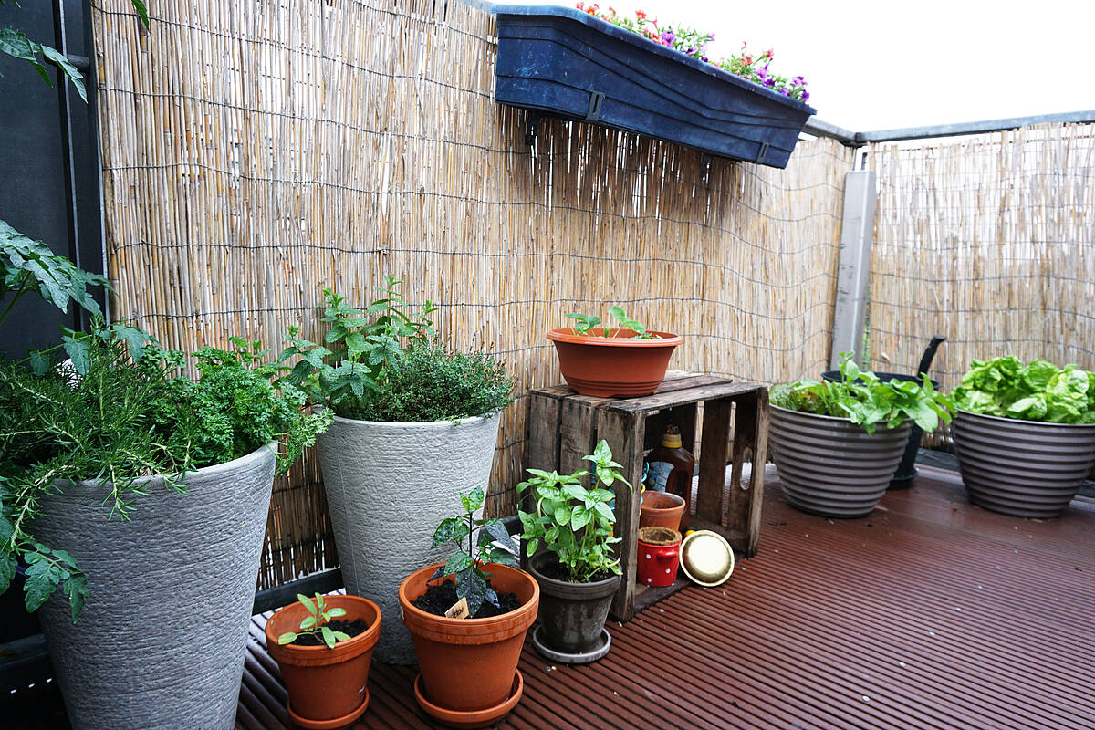 Starker Wind oder Sturm kann Gemüsen- und Kräuterpflanzen sehr zu schaffen machen. Wenn es möglich ist, solltest du, Töpfe, Balkonkästen und Co. ins Haus, in die Wohnung oder den Schuppen verfrachten.