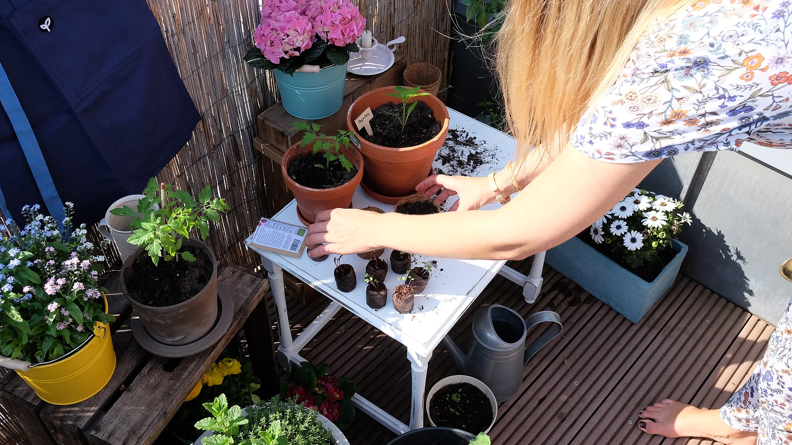 Das klingt schon etwas romantisierend und „idyllisierend“, manchmal ist es das ja auch. Vor allem aber ist das Gärtnern ziemlich erdend. Im wahrsten Sinne des Wortes. Einpflanzen, umgraben, aussäen, jäten, lockern, befüllen, gießen, umsetzen …